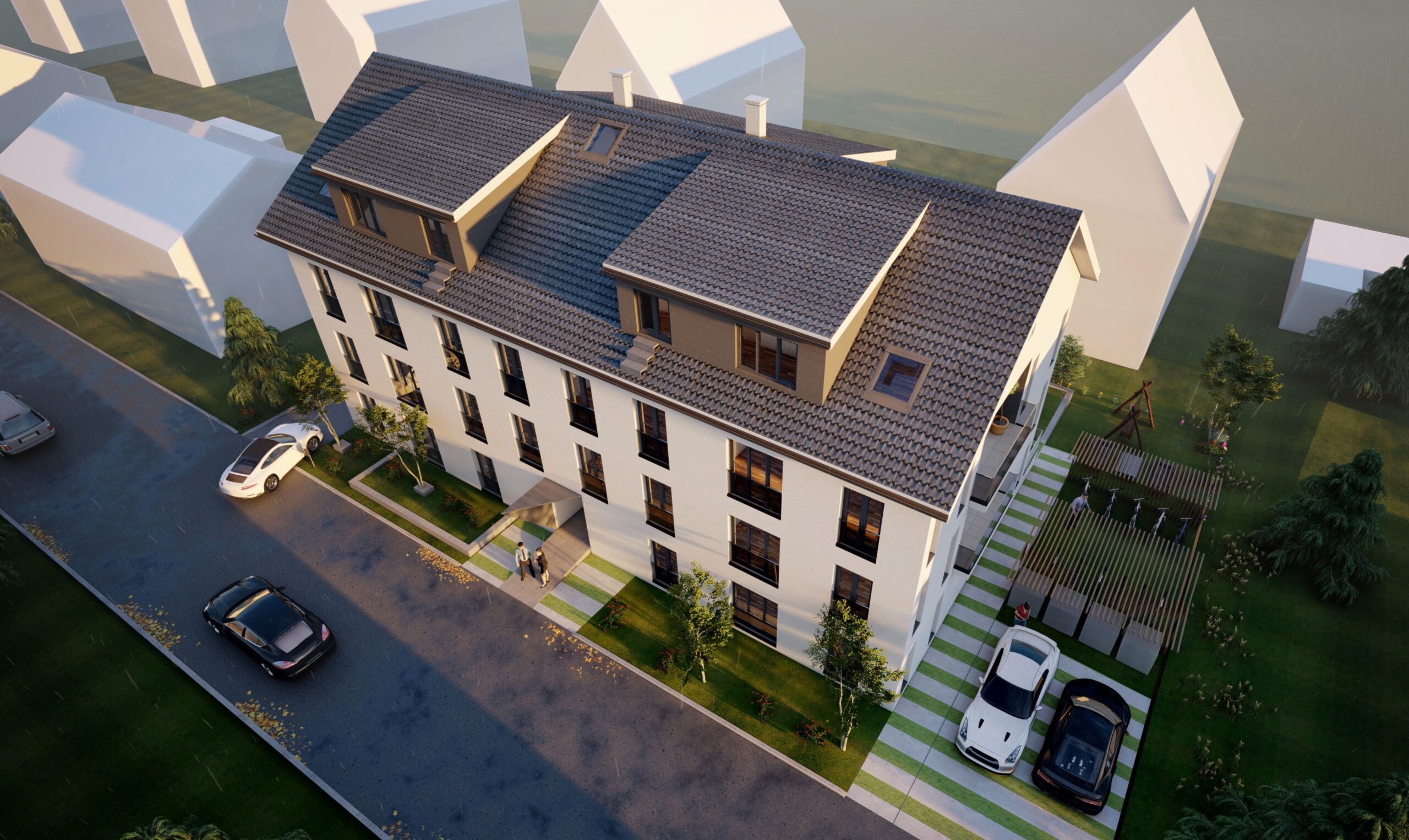 Dieses Mehrfamilienhaus besteht aus 12 Wohnungen und 10 Stellplätzen und befindet sich in 70771 Leinfelden-Echterdingen bei Stuttgart.
